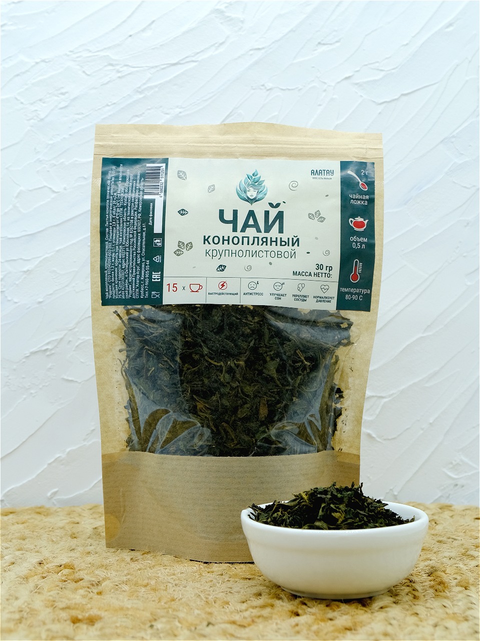 Конопляный чай Алатау - это вкусные чаепития с пользой для здоровья. Чай крупнолистовой ферментированный. При верном заваривании ярко раскрываются травянистый аромат и насыщенный гармоничный вкус без выраженных привкусов. А полезные вещества усваиваются легче и быстрее. Настой получается зеленовато-золотистым (чем крепче, тем темнее).