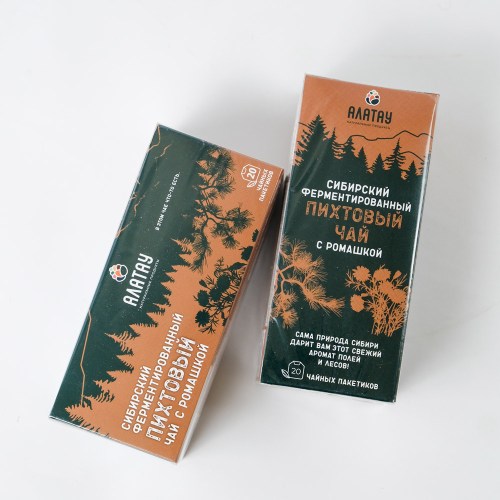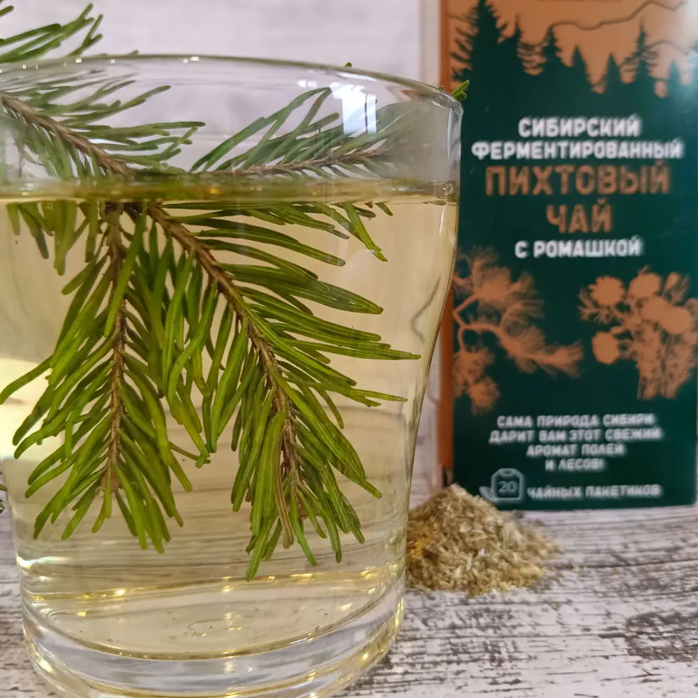 Сибирский ферментированный пихтовый чай с ромашкой имеет приятный вкус с нотками лесного аромата, при этом явный смоляной оттенок не чувствуется.
