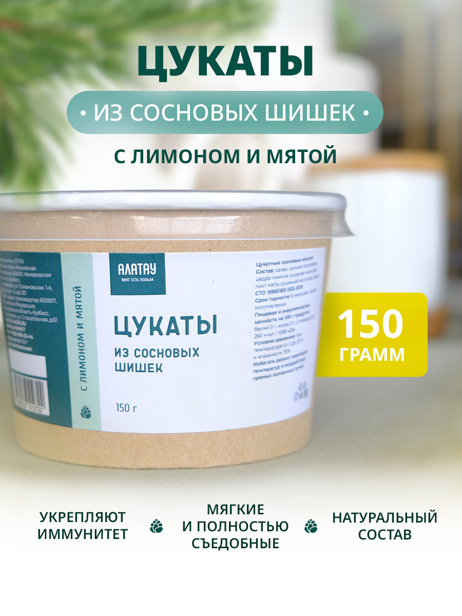 Цукаты из сосновых шишек с лимоном и мятой, 150 г